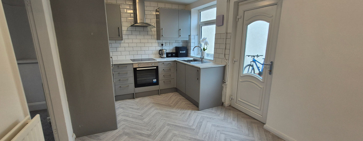 Recently fitted Kitchen containing cooker, fitted fridge, freezer and washing machine. Back door leads into the Garden.